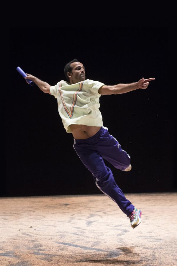 Sur les rythmes de folie imposés par Xavier, la chorégraphie se développe entre sauts, déplacements rapides, tours, glissades avec parfois des inspirations de danses traditionnelles. Tout cela compose un melting-pot absolument réjouissant tant les singularités entremêlées se déploient comme un catalyseur des notions d’hospitalité, de solidarité entre les peuples et activent une puissance d’imagination et d’écoute.