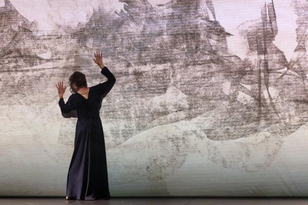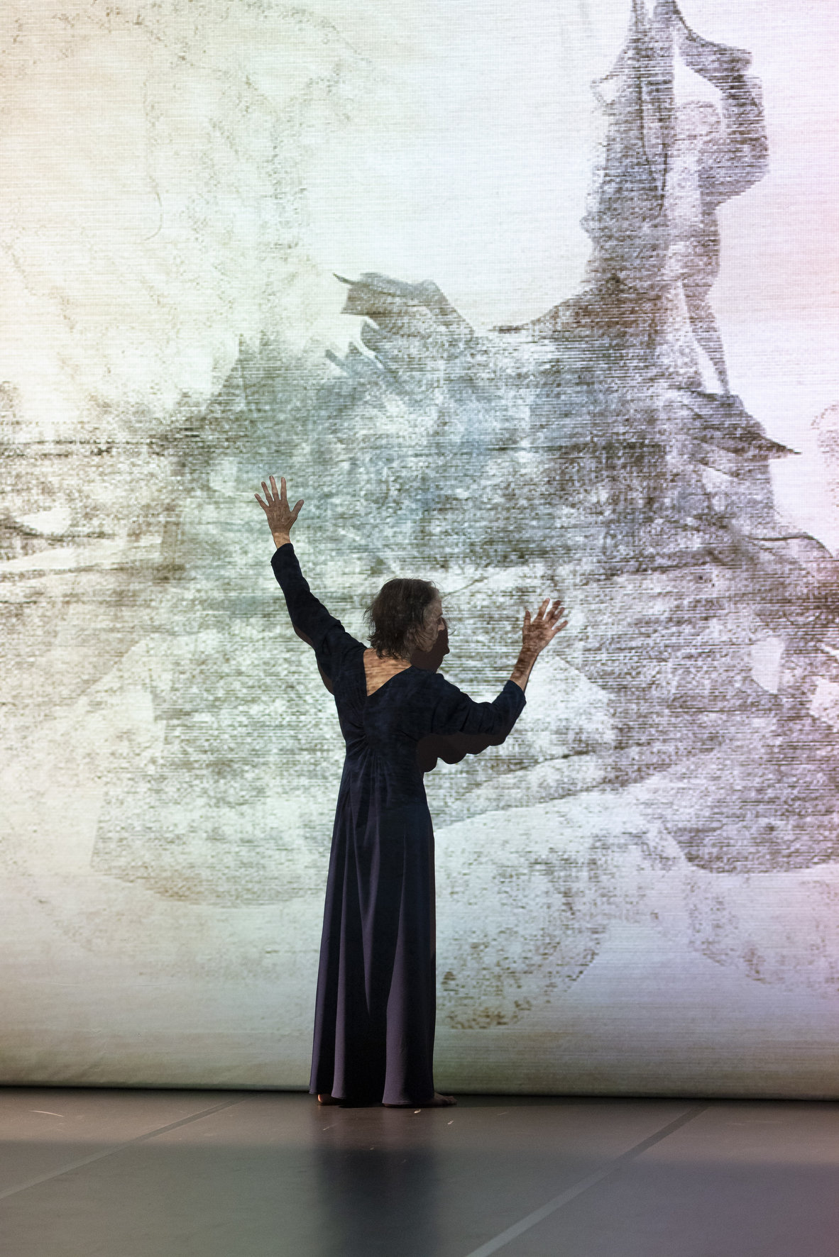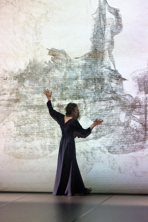 Et si Martin et Panadero ont parcouru ensemble un certain nombre d’années wuppertaliennes, elles n’incarnent pas moins deux époques différentes dans la carrière de la chorégraphe. Alors que Panadero nous amène quasiment au théâtre, Anne Martin danse, le geste fluide, romantique et intime. Ne parle pas en scène et lie sa présence au sol et au temps, voire aux siècles. Aussi elle commence Umwandlung sur une note quasiment asiatique.