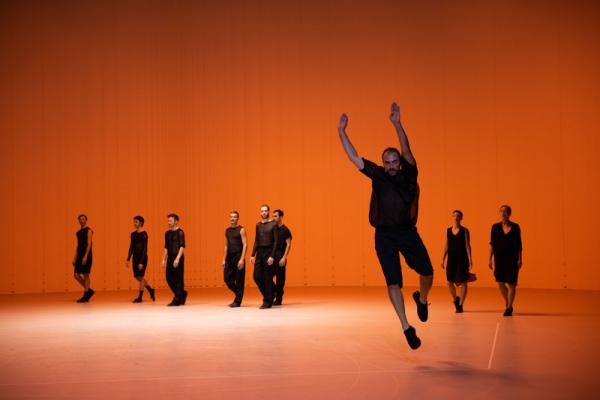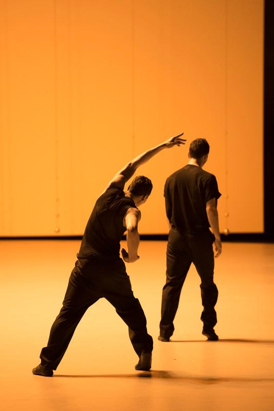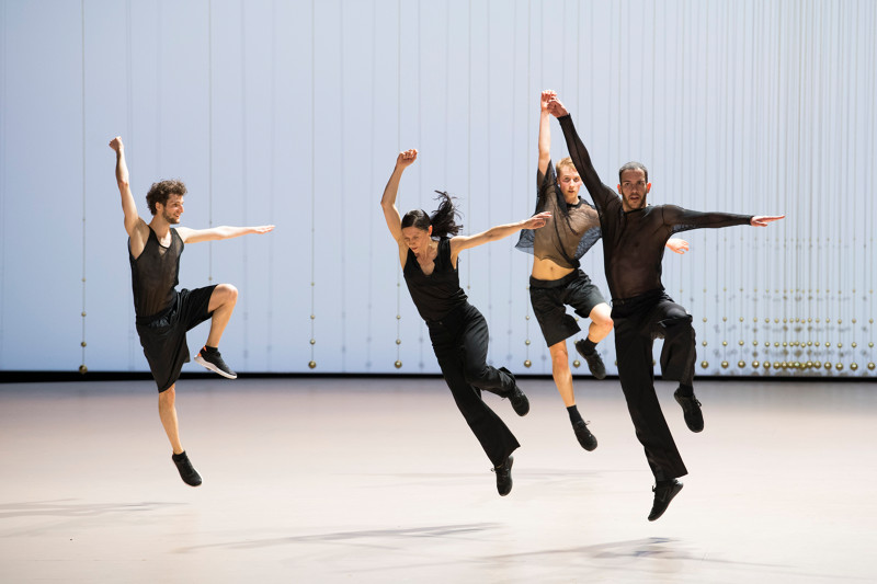 L’unité c’est d’abord la ligne, qui va et vient comme le ressac de l’écume, et finit par produire une sorte de toile de fond dont vont se détacher d’abord des accentuations, puis des mouvements individuels, des solos stupéfiants, des sauts que l’on a certes déjà vus dans d’autres pièces, comme Rain, Achterland, ou Zeitung… mais qui enserrés dans le groupe prennent tout leur relief.
