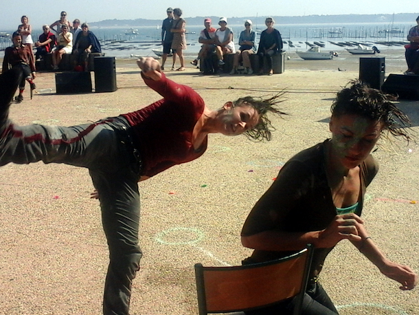 C’est encore à Arcachon que le bateau est parfois le meilleur moyen de transport pour voir un spectacle, dans les rues ou les jardins d’une ville sur l’autre rive du Bassin. Les Escales chorégraphiques ont révélé, au Cap Ferret, la compagnie Oxyput avec Soaf, une pièce pour trois danseuses et une musicienne qui met en jeu l’autorité, les règles, l’interaction avec le public, dans un engagement physique très poussé sur le bitume brut.
