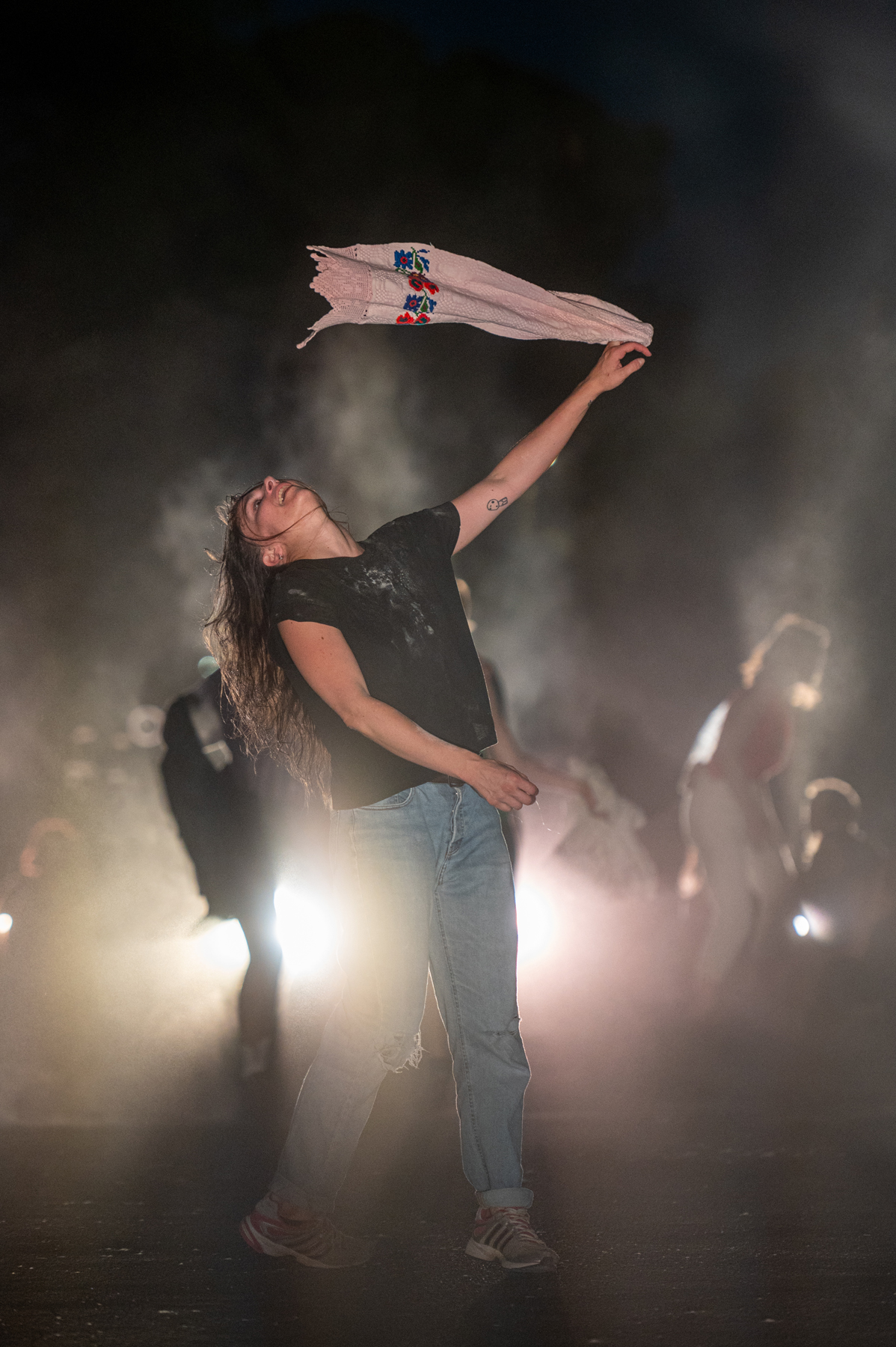 Au Parc de Longchamp, en haut du Musée des Beaux-Arts, Peterschmitt se montra incroyablement rusée. Là où tout autre chorégraphe aurait commencé par une forme de spectacle pour inviter le public à rejoindre les danseurs dans un bouquet final, elle commença par la fête, en mode bal et en chaînes humaines, de toute évidence préparées avec des amateurs. Ce n’est qu’après ce tour de chauffe que les professionnels de la compagnie, à l’écrasante majorité féminine, se jetèrent dans leur danse de Saint-Guy. S’agitant comme pour disloquer leurs corps et jeter leurs bras sur un brasier, elles tombèrent leurs tenues dans une fièvre libératrice qui avait l’air d’être bien réelle.