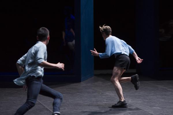 Le mécanisme paraît d'abord assez facile, voire manipulateur, qui passe progressivement de la pénombre profonde à la lumière. De même, de la marche lente à la course de plus en plus rapide. Or, ça n'est pas si simple. Car le fractionnement demeure, qui distribue l'apparition visible des danseurs en solos, ou en petites unités, souvent de trois, ou plus ; parfois en grand groupe. Voire en nuées de leur totalité. Cela chahute l'espace, le sillonne, le transperce, le laboure, le raréfie ou l'expanse.