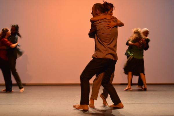 De ces mots qui parlent de transmission, d’amour, d’être au monde, d’audace, de solidarité, de normes et de doutes, Philippe Jamet et ses danseurs on su tisser une chorégraphie subtile. Souvent dans l’urgence, la gestuelle tout en résonnances des gestes esquissés par Michel, Monique, Audrey, José, Nathalie, Katharina, Manil, Arnaud, Adeline, peut projeter ses propres questionnements et perceptions. Fluide, parfois cloué sur place, empêché et pourtant flexible, libéré par sursauts rageurs, le mouvement se propage dans une sorte de récit qui se déploie en solo, duo, quatuor et marque de jolis points d’arrêt en forme de chaînes, de rondes, d’accolades et parfois de chutes.