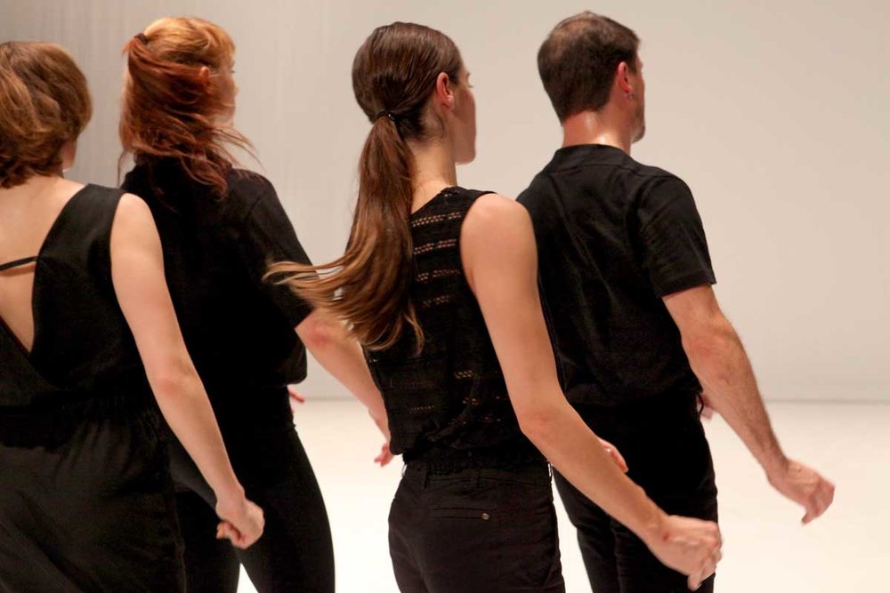 Ayelen Parolin : C'est effectivement le cas pour deux des quatres. Les deux autres nous ont rejoints par audition. Mais ce projet a bénéficié de beaucoup de chance. Il fallait le faire très vite, pour la Biennale Charleroi Danse, un événement très important. Nous ne disposions que de trois semaines. J'étais moi-même très concentrée, extrêmement claire dans mes intentions, et cela s'est ressenti aussi dans la manière de concevoir l'audition.