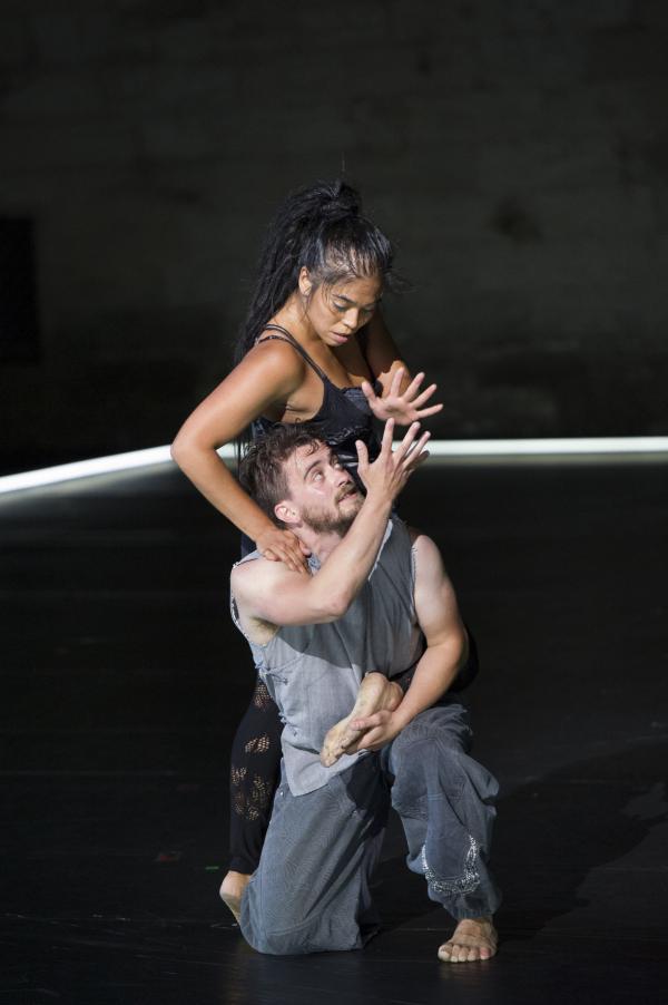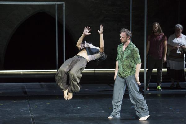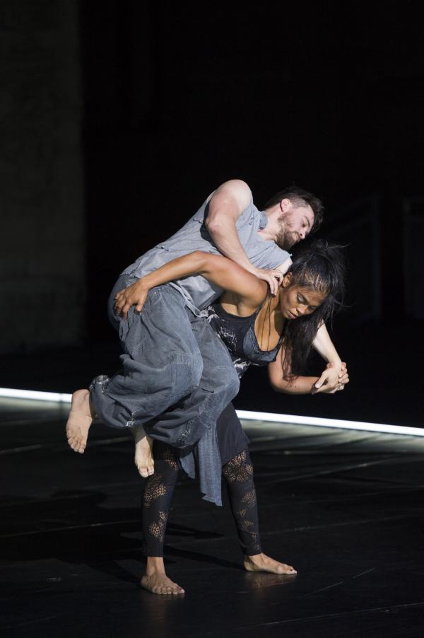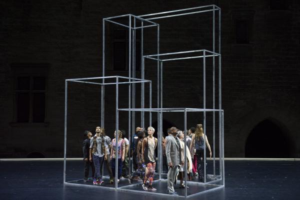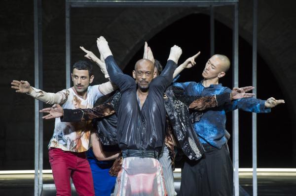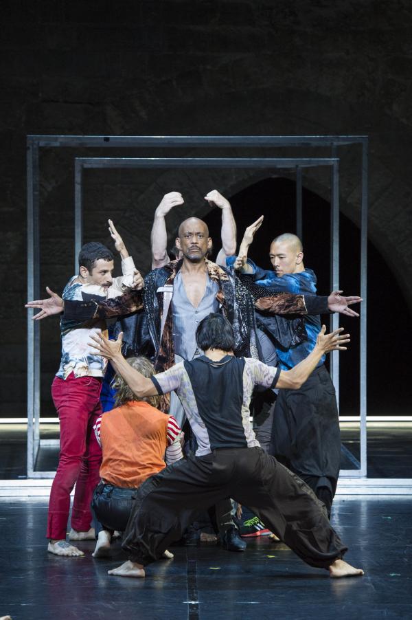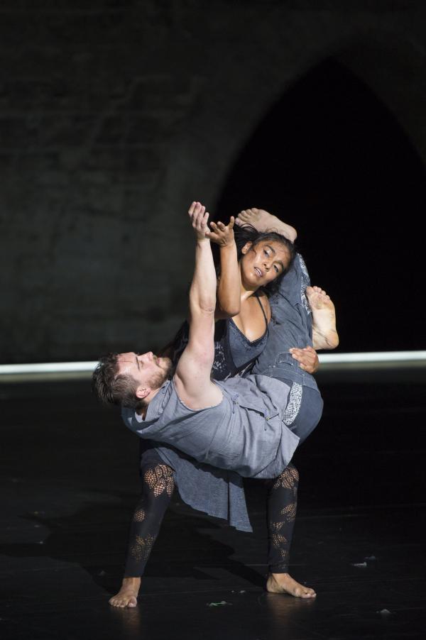 Dans cette re-création pour la Cour d’honneur du Palais des Papes d’une pièce datant de 2010, les chorégraphes ont voulu démontrer que la mixité des cultures artistiques différentes peut s’exprimer plus aisément par le langage du corps.