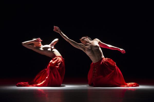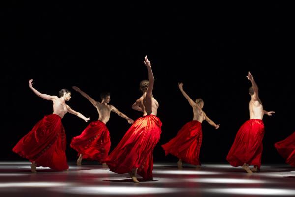 Chez lui, les jeux de rideaux ressemblent à des chausse-trapes, des ellipses qui, plutôt que morceller la vision, instillent une sorte de nostalgie de la disparition. Sa gestuelle, toujours à fleur d’émotion, sublime le corps des danseurs, attirant l’œil sur quelque détail fugitif. Graphique ou organique, ce sont toujours les rapports – principalement de couples – qui animent ses chorégraphies. Dans Bella Figura, la mise en scène est somptueuse. Les jupes rouges qui virevoltent, les lumières et les flammes qui nimbent les corps, tout concourt à créer des images d’une esthétique parfaite. Le duo final, avec ces haussements légers d’épaules en silence, et dans la pénombre est un morceau d’anthologie.