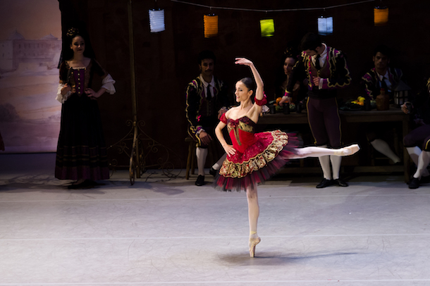 De son côté Maria Gutierrez s’est saisi, une fois encore avec intelligence, de son personnage pour lui apporter un quelque chose en plus. Tant techniquement que dramatiquement elles joue avec les attendus du rôle de Kitri, introduisant dans sa prestation une sorte de regard amusé sur ce qu’elle est en train d’accomplir. Une sorte de second degré de l’interprète au moment même où cette danseuse, soliste au Capitole depuis plus de quinze ans, faisait, dans un rôle qu’elle a choisi, ses adieux à la scène.