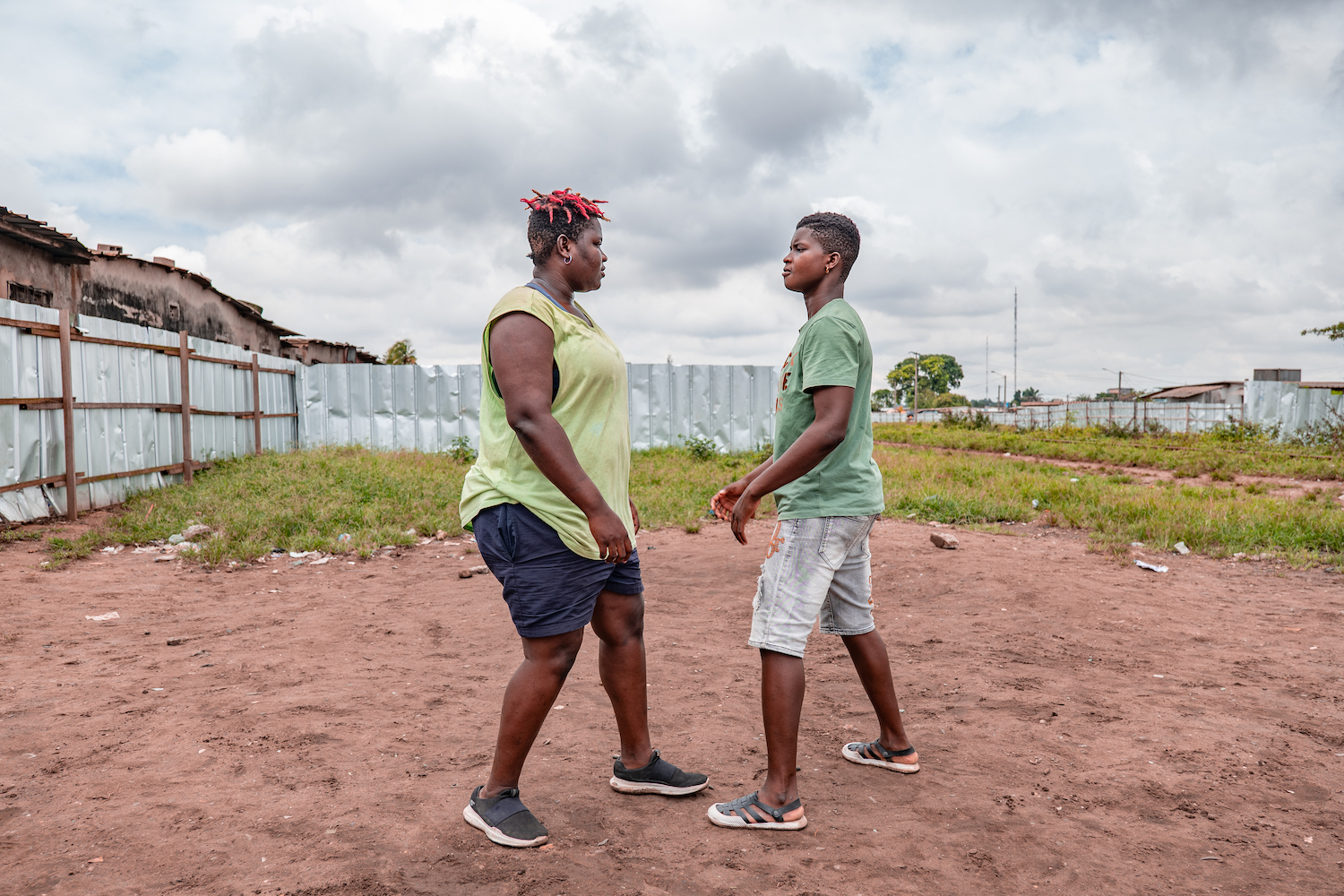 Deux filles des quartiers d’Abidjan s’emparent de la scène avec fougue et insolence, autour d’une boule de pâte blanche.