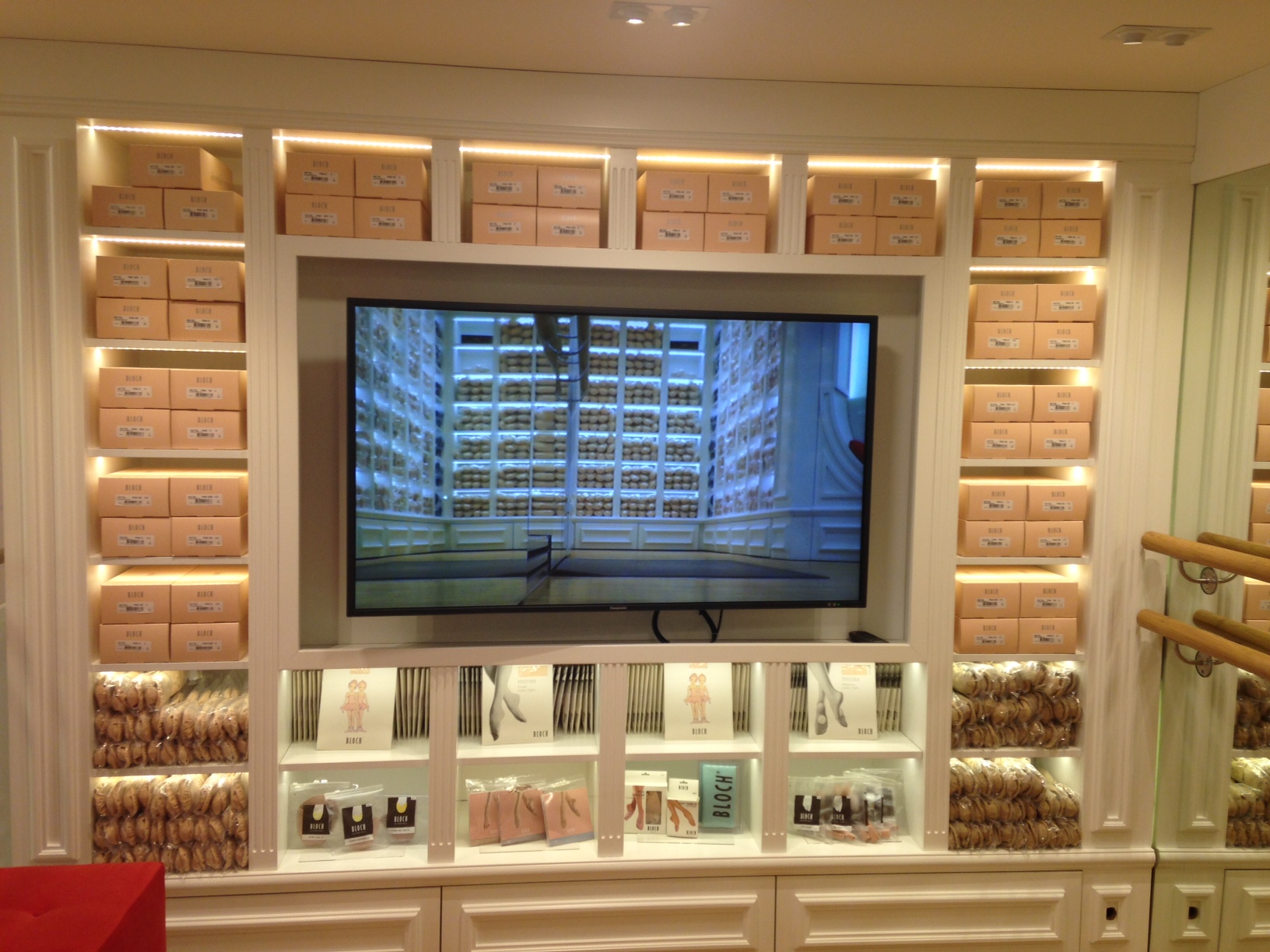 Mais la boutique pousse le raffinement encore plus loin en vous proposant d’essayer les pointes devant une caméra placée au niveau des chevilles relayée par un écran où vous pouvez donc voir, avec du recul, comment ces chaussons vous vont. Nous avons testé. C’est plutôt bluffant !
