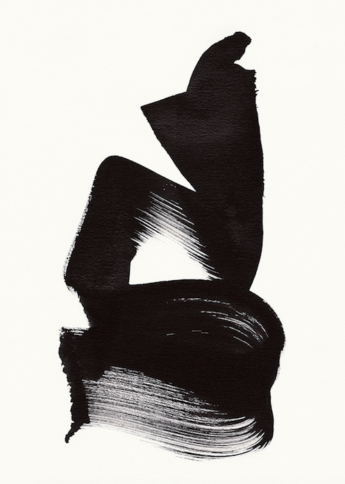 Dès l’université, elle prend l’habitude de noter ses impressions dans un carnet. La première encre naît d’un souffle en cours de méditation zen d’une jeune danseuse américaine dans le New York des années 1960. Non seulement ces deux pratiques ne la quitteront jamais, mais elles deviennent le vecteur de sa création. C’est cette pratique d’atelier que Carolyn Carlson invite à découvrir sous la verrière avec la composition inédite pour « Brush mind, no merit ». L’exposition se déploie avec les encres intenses, travaillées au sol, aux motifs inspirés des éléments (l’eau, l’air), de la nature (la vague, l’oiseau, l’arbre) ou de figures-types (le couple, le clown). La référence à l’Orient, nourrie des séjours de Carlson au Japon, est l’ensō (le cercle), à la recherche du mouvement parfait, perpétuel et spontané. En complément, la galerie présente pour la première fois la série des petites figures Offrandes (2013) ainsi que le poème graphique Grass over wind (2018).