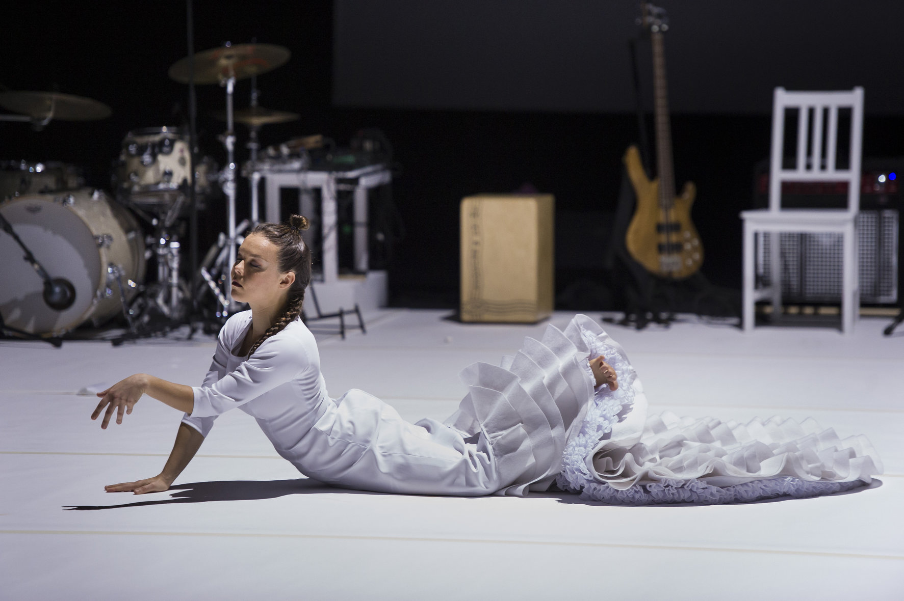 La chute n’est pas à proprement parler une figure du flamenco. D’une certaine façon, elle s’y oppose, car, comme le rappelle Rocío Molina, « le flamenco est une danse de la verticalité ». Elle, cherche pourtant à la rompre « en utilisant le sol, et pas seulement pour des zapateados ». Mais Caída del Cielo, est d’abord un spectacle composé en deux parties, qui opposent l’ombre à la lumière et l’ordre au désordre, le silence et le bruit. Mais au-delà le spectacle vise à mettre au jour les paradoxes de nos contradictions.