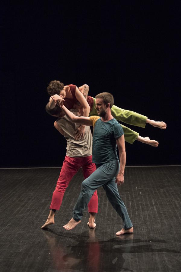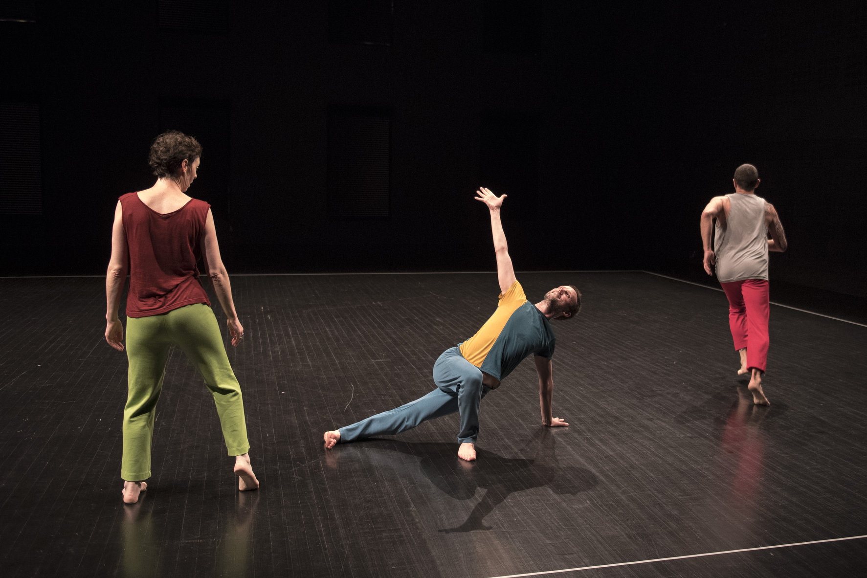 Or Chance, Space & Time ne s'en tient pas à cette studieuse intelligence. Elle en déborde largement. De l'intérieur. Les interprètes de cette pièce – Ashley Chen lui-même aux côtés de Philip Conaughton et Cheryl Therien – cultivent une corporéité contemporaine. Celle-ci s'est nourrie des apports de l'art-performance. Elle sait comment tout corps qui s'expose en conscience, recèle toujours déjà sa part de performativité auto-fictionnelle. Cela avant même toute inscription d'un geste manifeste.