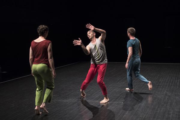 C'est là une excellence. Non moins exigeante. Cunningham proclamait que tout geste est à considérer potentiellement comme danse, que tout corps est disposé à sa danse. Le problème est que c'est tout l'inverse qui se donne à voir dans ses pièces sur scène. En revanche, pareilles notions prospèrent, chez Ashley Chen. Elles parviennent à un acmé d'émotion condensée, lorsquà un moment, lui-même (mais ce pourrait être un.e autre des trois) sillonne patiemment, longuement, le plateau, en solitaire et comme absorbé dans la méditation corporelle du sens immédiat, et nénamoins transcendant, de sa danse.