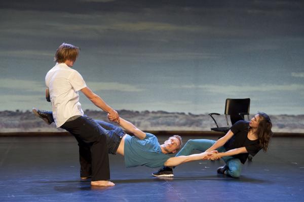 Sur fond de désert australien, les neuf acteurs danseurs de Chunky Move, tracent donc un portrait de notre société actuelle. La scénographie  – somptueuse – qui mêle à des mobiliers de bureau ou de salles d’attente des écrans vidéos qui isolent quelque moment ou quelque personnage par caméra interposée crée une sorte de no man’s land où tout peut arriver, où se construisent et se délitent des paysages en recomposition constante. Il y a des images qui marquent, comme cette accumulation de fauteuils dont un comédien entreprend l’ascension tandis que son ombre envahit le plateau. Ou, puisque l’on parle fauteuils, ce magnifique alignement final qui donne lieu à une danse où les danseurs s’avachissent et se reprennent d’un coup, avec une énergie sans faille.