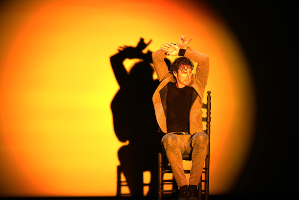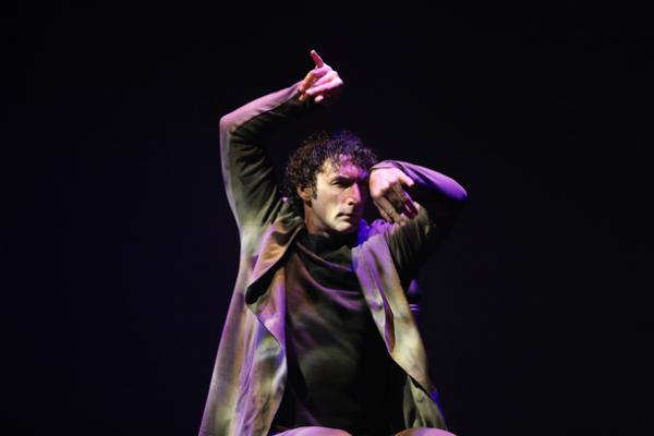 Commencant comme entre rêve et sommeil par des gestes songeurs que souligne le flou du costume, se poursuivant dans la vélocité rigoriste de vêtements aussi noirs qu’ajustés, ou le flamboiement d’un costume rouge soulignant la fougue du danseur. Le jeu exceptionnel du multi-instrumentiste Diego Villegas, sert de contrepoint à des poses orgueilleuses, introduit du doute dans les passages les plus éclatants.
