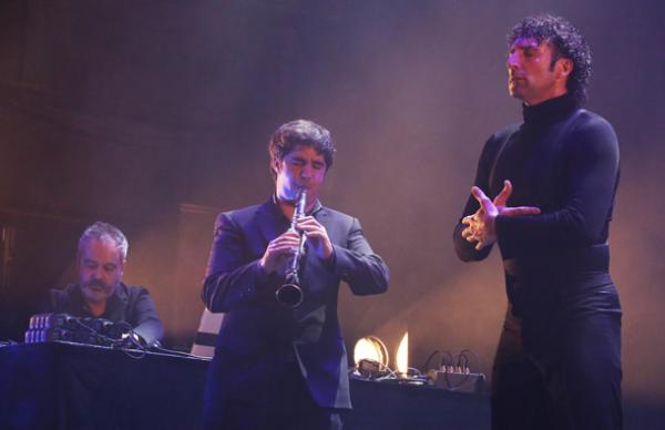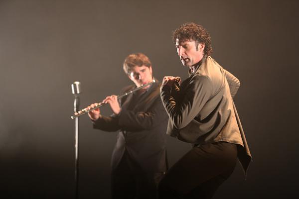 À ses côtés, Daniel Muñoz d’Artomático ouvre de nouvelles pistes sonores grâce à l’electro-flamenco, en clair, de la musique électronique aux accents flamenco, et grâce aux musiciens formidables qui l’accompagnent comme Diego Villegas, saxo, harmonica, flûte, clarinette ou Miguel Ortega, chant et guitare. Cette curieuse alliance d’instruments que l’on n’a pas l’habitude d’entendre ni d’associer à l’art du cante jondo à une guitare éveille l’attention et donne de nouvelles inflexions à la danse, tout comme la lumière, très (trop ?) travaillée de Claroscuro.