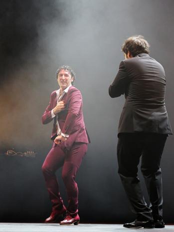 Ángel Muñoz a construit son spectacle en sept étapes, chacune d’entre elles étant consacrée à un style précis du flamenco : granaína, malagueñas y abandolaos, livianas, tangos, soleá apolá et bulerías, mais aussi, et de façon plus attachante, à des styles d’hommes différents.