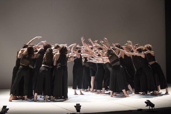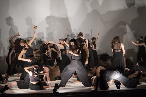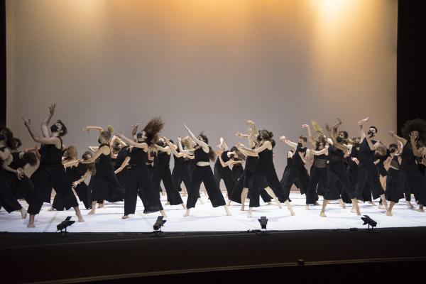 A la fois chœur antique, moderne, système, organisme, horde, entrelacs, nuée, essaim, masse, défilé, meeting, attroupement, groupe et communauté les étudiants du conservatoire traversent des pans entiers d’une histoire de la danse et de l’humanité réunies par la synergie de « faire ensemble » ou de faire société. On peut y voir des danses guerrières, des unissons type danse rythmique à la Dalcroze, de la danse répétitive et minimaliste, un vague souvenir de Béjart, ou d’Ohad Naharin, des solos stupéfiants, des bonds surprenants, des qualités de mouvement époustouflantes, et surtout une singularité chorégraphique avec des figures nouvelles, étonnantes, rafraîchissantes par leur liberté. Au fil de l’heure se dessinent des personnalités, des façons de vivre, d’entrer dans la danse…