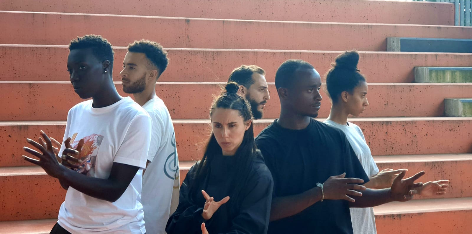 Marina Gomes : Nous n’avons pas abordé cette création en nous disant d’emblée que nous allions croiser danse et théâtre pour être interdisciplinaires. C’est au fil des répétitions qu’est venue l’envie d’utiliser les mots et d’autres manières de communiquer qui sont spécifiques aux cités comme certains sons, les sifflements, les rires. Le jeu d’acteur a donc naturellement pris une place grandissante. Pour aller plus loin dans le jeu théâtral et trouver une plus grande justesse, nous avons intégré Jordan Rezgui, un comédien formé au conservatoire national.