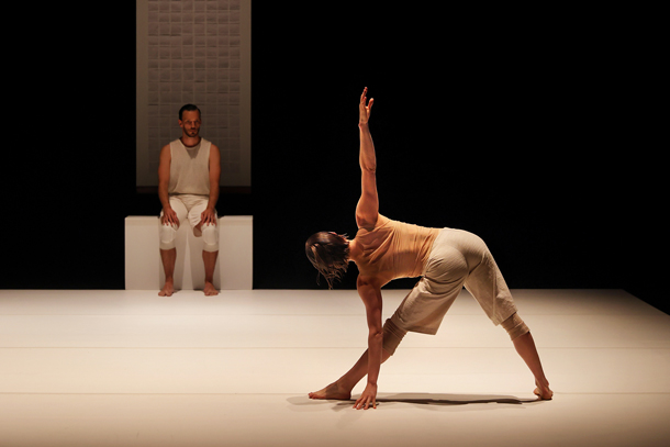 Le récit est merveilleusement porté par un travail chorégraphique exceptionnel. Tout tient aux moteurs différents du mouvement bassin, bras, épaules. La phrase est quasiment toujours la même, et la gestuelle se répète tout en se décalant et se déplaçant très subtilement dans l’espace, le temps et dans l’intention, à l’instar de la musique. Ainsi, le cercle que forment les bras d’Harriague peut se placer au-dessus des épaules, comme autour des mollets de Leriche. La phrase intiale peut se faire au sol, dans différents plans de l’espace, éloignée ou rapprochée. En partant du bassin, des épaules ou des bras, en se répondant comme dans un effet miroir, ou en se dissociant dans le temps, le rythme de la musique les obligeant, parfois, à s’écarter l’un de l’autre. C’est totalement hypnotique et habilement mené.