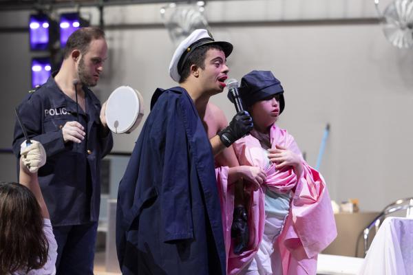 Quant à Dançando com a Diferença, sa différence principale réside dans la condition de ses interprètes, un ensemble qui réunit des personnes « en situation de handicap ». Et à la différence d’autres compagnies dites « inclusives », celle-ci danse avec une multitude de « différences » – handicap physique, autisme, troubles moteurs, syndrome de Down ou autres – ce qui singularise chaque interprète et relativise le handicap. L’idée de diversité prend alors un sens plus fort encore que dans d’autres compagnies « inclusives ». Dans le travail de création aussi, la diversité va loin. Après avoir présenté en 2019 au CND Happy Island dirigé par La Ribot [Lire notre critique], la compagnie s’est de nouveau rendue à Paris, avec trois propositions, à Chaillot (Marlene Montero Freitas) et au Théâtre des Abbesses (François Chaignaud, Tânia Carvalho) .