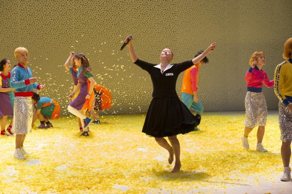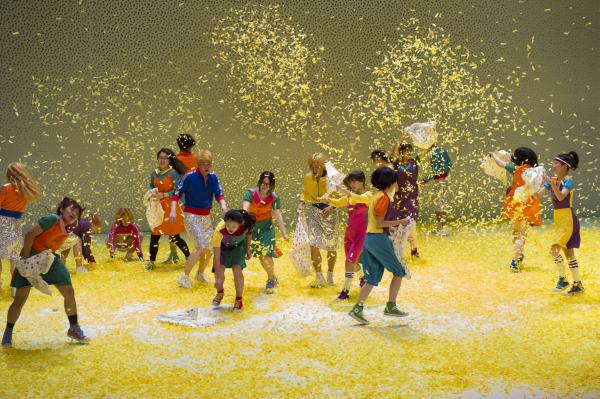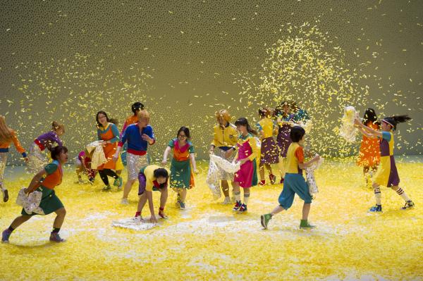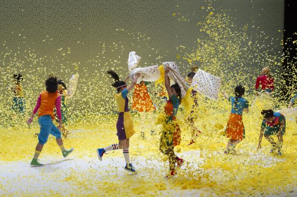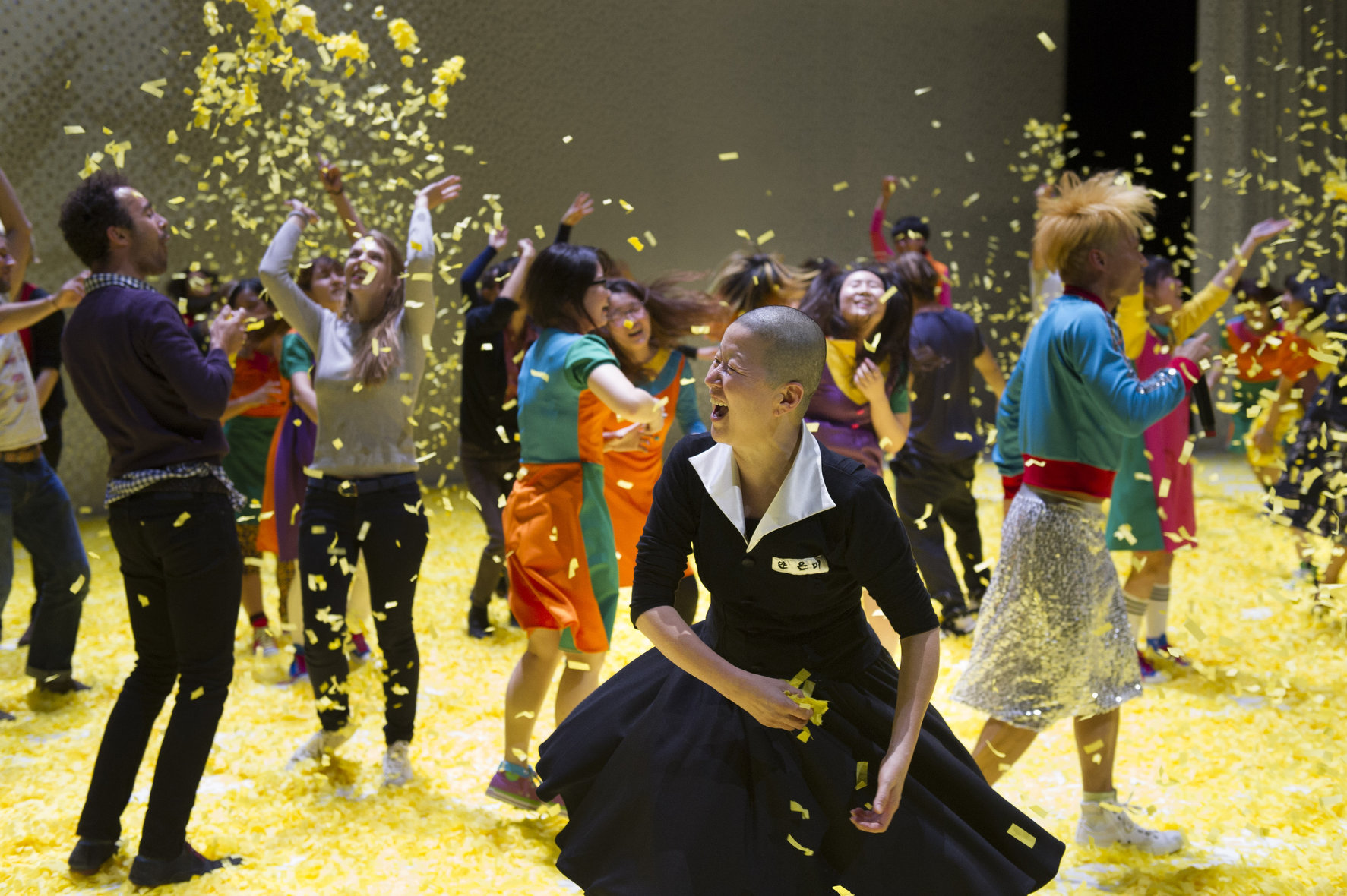 Après tout, ils dansent, et ça veut dire qu'ils font la fête. Ils vont même jusqu'à coller des bisous aux spectateurs et bien sûr, à la fin tout le monde est invité à les rejoindre sur le plateau pour un free style partagé. Ici on danse comme on veut, c'est Eun-me Ahn en personne, et en robe noire plutôt stricte, qui lance le spectacle par un solo qui n'est autre qu'un numéro de cabaret, chassant de nos têtes toute velléité à voir de la danse bien comme il faut. Quand le cygne noir descend du plateau, la voie est ouverte vers une explosion des couleurs jusqu'à l'orgie finale de confettis jaunes.