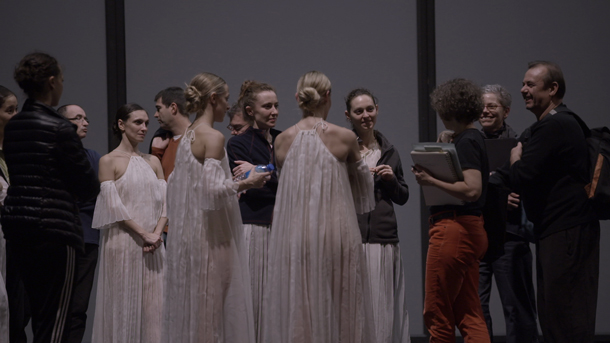 « C’est moi qui ai choisi de tout axer sur le mouvement nous confie Marie-Hélène Rebois, ce que je voulais, c’est penser cinéma. Embarquer les spectateurs comme s’ils devaient être dans la position des danseurs. » Et effectivement, le film est captivant, au sens propre du terme. On se laisse porter par les explications de Lisa Kraus et la fluidité du mouvement brownien. Pour ce faire, Marie Hélène Rebois choisit de filmer avec une seule caméra. « C’était un vrai pari. Heureusement, j’avais avec moi Hélène Louvart, qui est une chef’op géniale, pour tenir des plans séquences sans le secours d’une deuxième ou d’une troisième caméra. Derrière, il y a un énorme travail de montage car je voulais donner l’impression qu’il n’y a qu’un seul plan. »