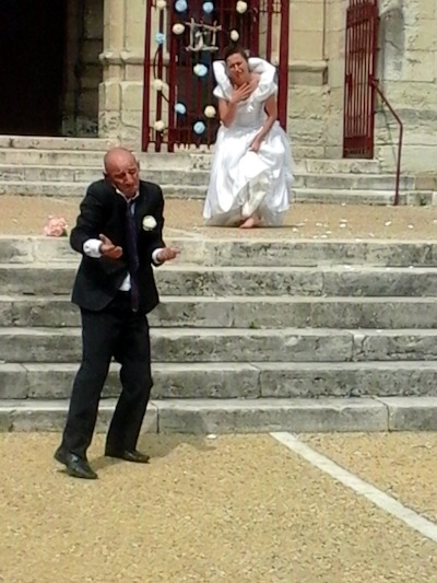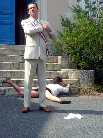 Il faut dire aussi qu’ils savent faire marcher le public. D’épisode en épisode, la cohorte se déplace dans les rues de la ville, rues périgourdines en l’occurrence. Et on croise d’autres groupes qui se rendent à d’autres lieux de spectacle, par exemple pour voir un homme se faire jeter par sa femme et s’habiller devant sa maison, la femme/bonne croupissant à ses pieds, voire à son derrière.