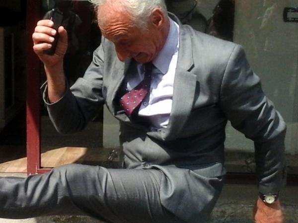 On le retrouve plus tard, son portable à la main, devant (et même dans) une vitrine de magasin, au portable avec sa femme, laquelle lui assène, dans un monologue interminable, les détails des préparations requises pour assister à un mariage (à condition d’avoir bien compris le propos).