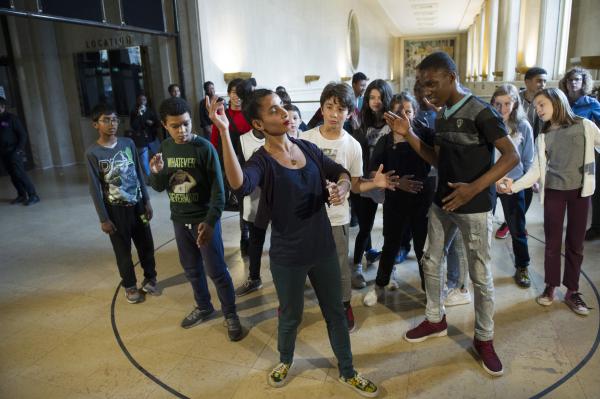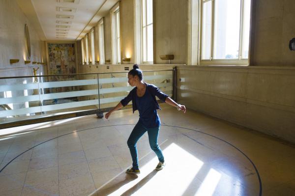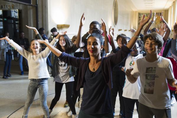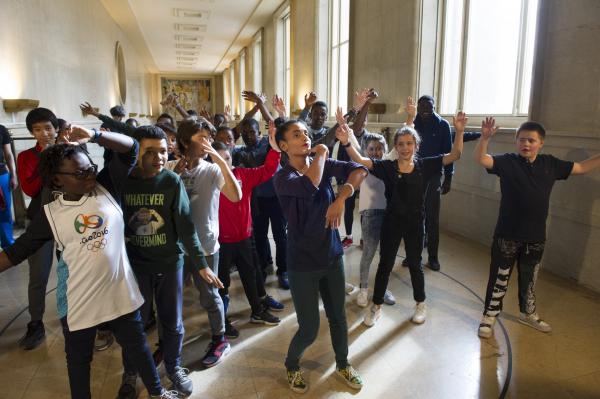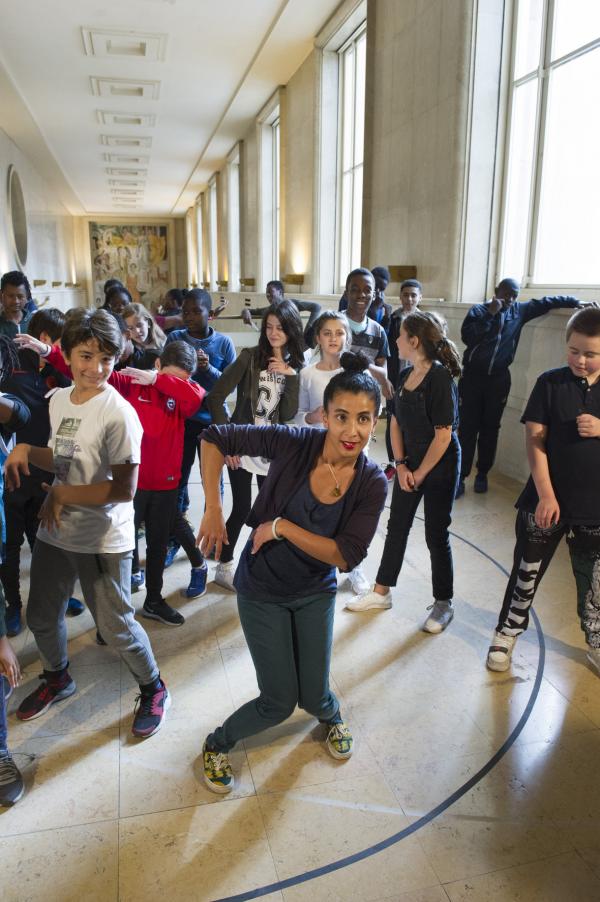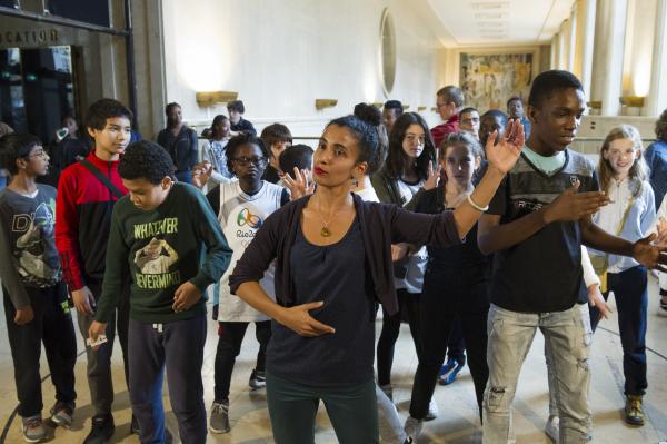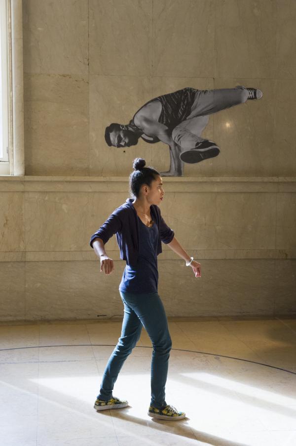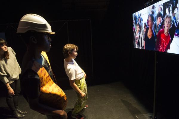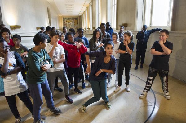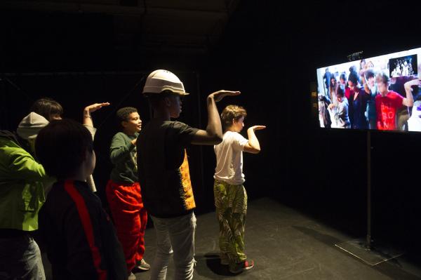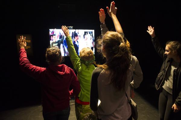 Le chemin commence dès le haut du grand escalier du Théâtre de Chaillot, où une danseuse solitaire évolue autour d’un cercle. On la retrouve quelques minutes plus tard dans la petite salle Béjart, via un écran devant lequel se positionnent les visiteurs. Ainsi reliée par l’image, elle guide leurs mouvements pour un moment de Freestyle jouissif, où même les plus rétifs finissent par se laisser entraîner dans la danse. Auparavant, ils auront pu s’échauffer avec Bounce, un dispositif avec miroir qui démultiplie chaque geste et transforme le spectateur en virtuose de la danse debout. Plus passive est l’installation Tuts, où seule la photo du volontaire - déguisé ou non (des vêtements d’emprunt sont disponibles) - dans une des positions du Tétris, se retrouve ensuite mise en mouvements. Pour distinguer les différents styles de danse, un détour par la Battle s’impose : sur deux tables sont disposées des cartes à l’effigie de breakeurs, popeurs et autres spécialistes, avec lesquelles deux joueurs s’affrontent en déclenchant les vidéos correspondantes. Pour prolonger encore ce défi virtuel, il ne reste plus qu’à coiffer le casque de Jam et plonger en réalité augmentée au cœur d’un cercle hip hop. Une dernière cent pour cent ludique, à l’image d’un parcours délibérément placé sous le signe du « Si on jouait à… ».