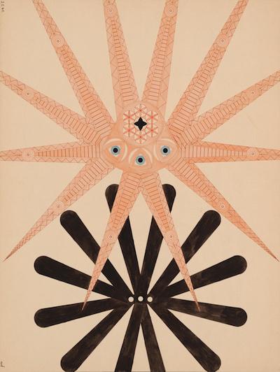 Sont évoquées aussi les épisodes de danses de possession, comme celui de 1518 à Strasbourg ou des Possédés de Loudun en 1630, jusqu’à la tarentelle, « danse rituelle et thérapeutique » encore vivace dans les Pouilles en Italie. En regard, les œuvres graphiques d’Augustin Lesage ou de Louise Tonnay incarnent une sorte d’écriture automatique de la transe.