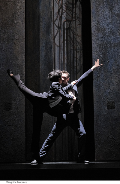Entre ces deux œuvres très différentes, Bruno Bouché, directeur du Ballet du Rhin, a glissé une courte pièce dont il est l’auteur. Composée sur des partitions de Scriabine et Rachmaninov, elle est intitulée sobrement 40D et sous-titrée Für Eva Kleinitz opus 0.1. - ce qui laisse présager d’autres opus à venir. Le souvenir de la directrice de l’Opéra du Rhin, tragiquement disparue ce printemps, plane en effet sur cette courte pièce à l’indéniable puissance d’évocation.