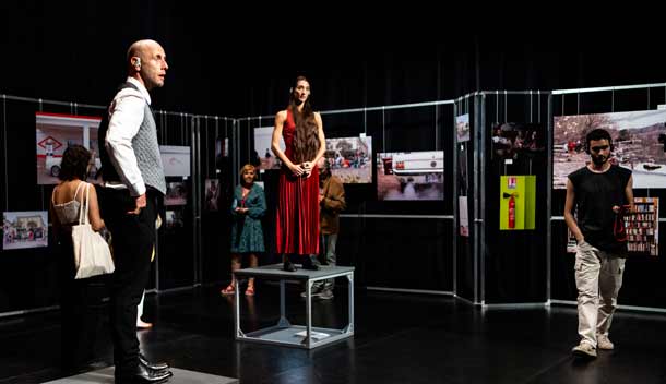 Denis Plassard : Parce que la proposition, un peu atypique, qui n'est pas un spectacle au sens premier du terme, correspondait bien. Et puis, en parallèle, nous allons bientôt jouer dans le Centre social Gisèle Halimi, un peu comme si la boucle était bouclée. Nous avions répété à la Maison de la danse, à l'époque du Covid, le duo, On ne parle pas avec des moufles, avec un comédien sourd. Et nous avions aussi répété au Centre social Gisèle Halimi. C'était d'ailleurs la première collaboration entre la Maison de la Danse et ce Centre. Vernis Sage est vraiment une proposition tout-terrain, une forme hybride entre performance et exposition. Cela entrait dans ce cadre de propositions à faire dans un quartier, à différents endroits.