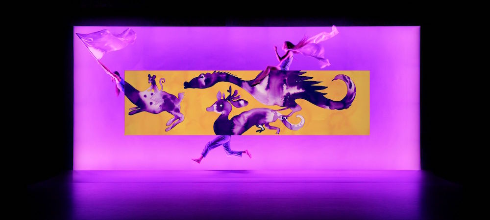 Sur un écran flottant au centre du plateau sont projetées des chimères, figures d’un autre monde, monstrueuses et sublimes, chargées d’une irrésistible force symbolique. Elles s’animent au point de déborder du cadre, sous la forme insolite de morceaux de corps affranchis de la pesanteur. Des chimères dans la tête invite à plonger dans l’imaginaire abyssal de l’enfance révélé et sublimé par le geste dansé.
