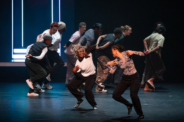Réunir onze interprètes spécialistes de leur discipline dans un joyeux melting-pot pour le plaisir de la danse. Chacun et chacune sont impeccables dans leur genre, chacun et chacune déploient une énergie folle. C’est comme si le public se retrouvait au milieu d’une block-party dans laquelle tous les styles seraient réunis et se mêleraient allègrement. On passe du break explosif de Yanis Ramet au waacking véloce de Asia Zonta, du savant coupé décalé de Tatiana Gueria Nade au Krump furieux de Germain Zambi (qui gagne actuellement tous les battles) mais également le dancehall langoureux de Mwendwa Marchand, le très vif pantsula de Kgotsofalang Joseph Mavundla, l’électro musical de Slate Hemedi Dindangila et Romain Franco. Mais celui qui impressionne le plus est ce jeune danseur indien qui mêle avec une aisance confondante le Kathak et le Waaking, Sangram Mukhopadhyay. Personnage caméléon, il est celui qui ouvre et conclut le spectacle, incarnant à lui seul la grâce et l’énergie du spectacle.