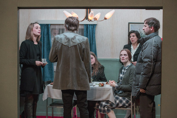 Ludovic Moreau : Le spectacle Tristesses, d’Anne Cécile Vandalem est un spectacle de théâtre musical passé à Avignon 2016, distille une ambiance à la Lars von Trier. On y voit des personnages dans une vidéo tournée à vue, qui sont regroupés dans un canton confronté à la montée des nationalismes. Là aussi, il y a beaucoup d’humour même si le sujet est plus que sérieux. C’est du théâtre filmé, qui dénonce le pouvoir des médias, avec des moments sans vidéo, très habile, assez proche aussi d’un Bergman. Il y a des scènes burlesques dans une veine très flamande.