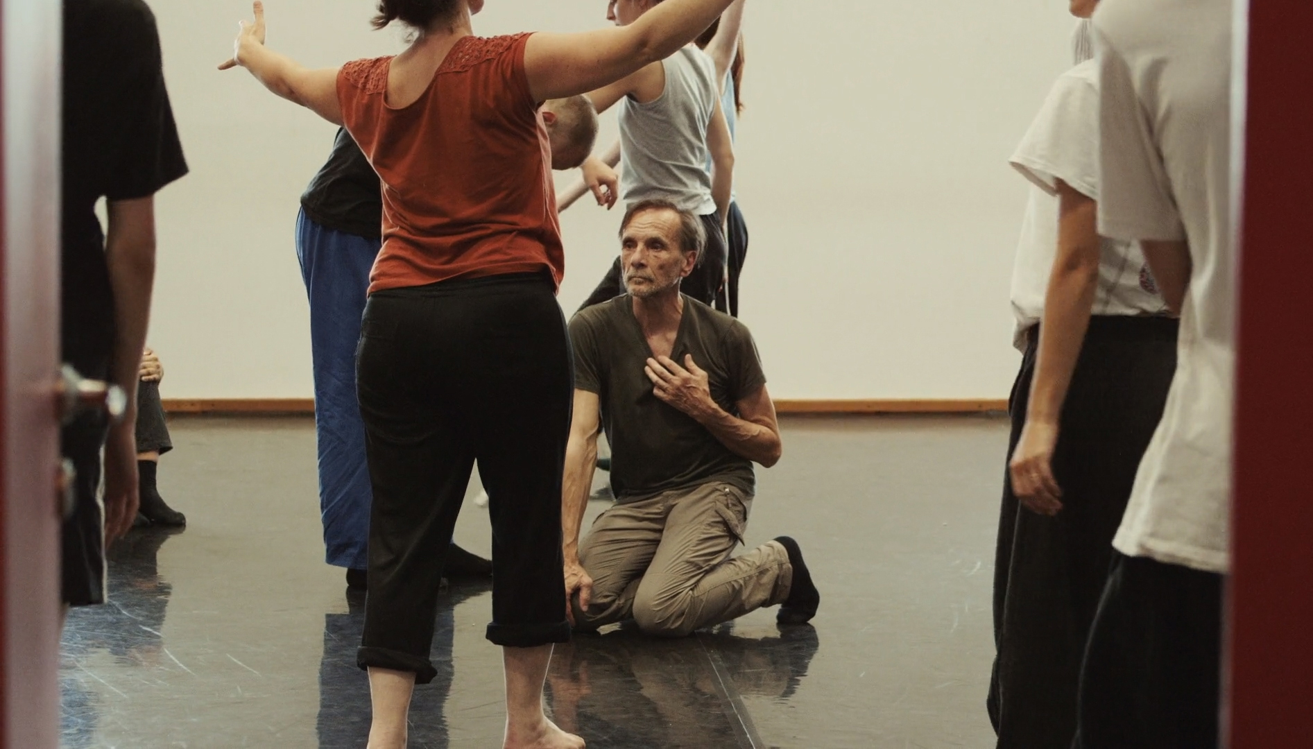 Julie Charrier : C’est étonnant comme Dominique Petit révèle les gens tout en étant dans une grande exigence, c’est un très grand pédagogue, avec un sens de l’intime et des outils très formels. Parfois il est très drôle. Il a 70 ans, est très léger, très joyeux tout en étant très prodond. Son enfant remonte à la surface, et de ce fait, offre une liberté. Et vous voyez, celle que l’on voit prendre des photos dans le film voulait arrêter la danse, et grâce à ce stage, ça l’a relancée. Même Konan qui est dans une pratique intensive, est tout le temps en tournée avec Peeping Tom, il était hyper motivé pour aller chercher très loin en lui cette voix intérieure du danseur, une chose viscérale qu’il arrivait immédiatement à transformer en geste artistique, comme une sorte d’alchimie qui se produisait sous nos yeux. Il y a des moments dans la vie où l’on bénéficie d’une forme de grâce, et ce film, du début à la fin a été dans la grâce, le stage, la manière de le financer, le montage…. Très clair par rapport à de nombreux projets si complexes.