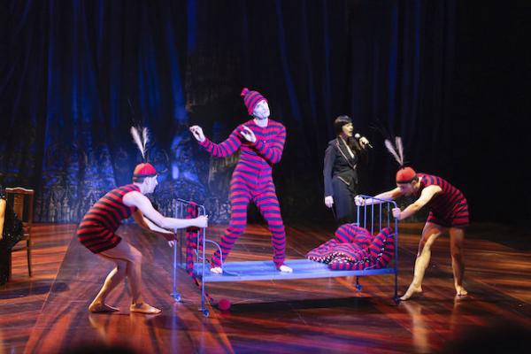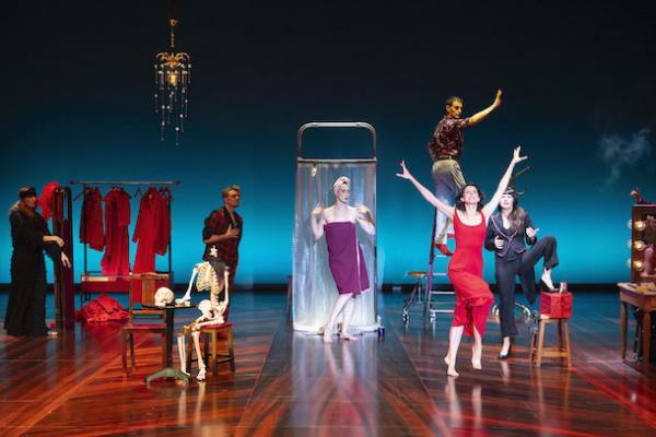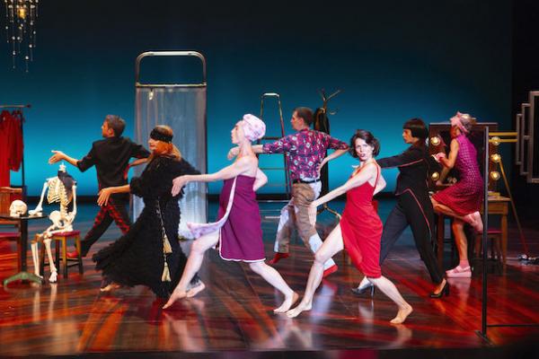 Acte II. Quand le rideau s’ouvre à nouveau, tout a changé comme par un grand « shazam ! ». Si le rythme de la première partie permet encore de s’accrocher aux événements, la seconde est inénarrable. Les actions chorégraphiques se démultiplient dans un décor éclaté, composition spatiale d’îlots évoquant un café, une cabine de douche, une chambre… Voilà qu’on danse dans son lit de ferraille en pyjama à la Décodex ou fait le clown en faisant semblant de perforer son propre corps à la perceuse électrique. Dans ce cabinet de curiosités chorégraphiques – comme glanées dans le répertoire Decouflé, dans son esprit cabaret et ses décors – l’ambiance est à la comédie musicale et au slapstick.