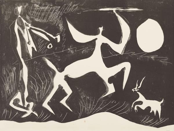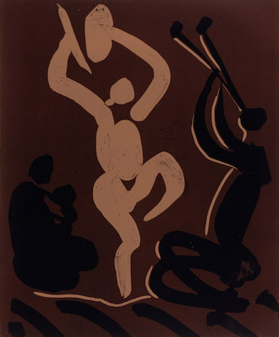 Dans ce catalogue des gestes dansés, on ne saurait bien sûr oublier la corrida et ses passes éminemment chorégraphiques. Ni les célèbres figures mythologiques qu’affectionne le peintre, en particulier son alter ego le Minotaure, qui apparaissent souvent saisis dans une bacchanale effrénée.