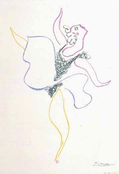 La proximité du peintre avec les Ballets Russes, et ses décors ou costumes, notamment pour Parade, Le Tricorne, Pulcinella ou Le Train Bleu, ne sont certes pas une découverte. Mais si la taille modeste de l’espace d’exposition, au niveau inférieur du Palais Garnier, ne permet pas d’admirer de grands tableaux du maître - que l’on a toujours le loisir d’aller contempler en son musée du Marais -, les documents, photographies et dessins rassemblés mettent fort justement en lumière combien son œil fut sans cesse sollicité par toutes les formes de danse, du music hall à l’arène, et ce dès ses débuts.