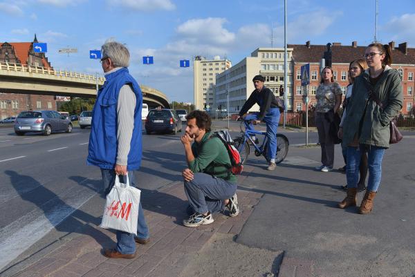 Tous pourraient brandir une pancarte « je suis danse », sauf les performers des Gens d’Uterpan (Annie Vigier/Franck Apertet) qui traversent l’espace public selon un système à la rebelle et discret. « Topologie » commença en 2010 à Belfort pour finir l’année 2014 à Gdansk en Pologne, étant passé par Vienne, New York, Taiwan, la Turquie, Zurich, la Suède, Paris etc. Sa présence dans une ville s’étend sur cinq jours de marche, suivant des tracés qui ne cessent de se croiser. Cette géométrie tentaculaire, qui ne connaît que lignes droites et inversions subites, est appliquée à la cartographie urbaine comme pour la marquer au fer rouge. Pour les marcheurs-danseurs, il s’agit de suivre le tracé à la ligne et donc de prendre les chemins de traverse, de franchir des murs et des grilles, de traverser des cours d’eau etc., le tout soumis à l’obligation de croiser les camarades à une heure fixe à une des croisées des chemins. Leur concentration, leur état de corps marquent une différence subtile mais ineffaçable avec le comportement urbain formaté. Espérons que leur Topologie pourra échapper au Plan Vigipirate. Un Charlie Hebdo à la main, ça devrait passer… En ce sens : Dansons Charlie !