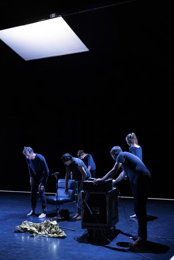 Les faits : Marie Cambois a créé en 2013 La Distillerie collective qui est, comme son nom l’indique, un collectif. Et qui plus est, voué à la création pluridisciplinaire. En ses propres termes, Cambois « apprécie les formes pluridisciplinaires où chaque collaborateur agit avec son propre médium au sein d’une recherche commune, qu’elle soit improvisée ou composée. » Sa nouvelle création en est l’exemple parfait. Le cachet du titre faisant foi, Cambois revendique ici une œuvre totale, à la lisière des disciplines, sans trop les mélanger : ALL (à la lisière). « All », c’est bien sûr « tout » mais travaillant à Nancy et créant ce quintette à Strasbourg, Cambois n’a pas besoin de traverser le Rhin pour savoir ce que ces trois lettres englobent en allemand. « All », c’est le cosmos, et donc un « tout » ultime, bien plus puissant encore. Sur le plateau de Pôle-Sud elle est allée à fond dans la rencontre de danse, théâtre, tournage de film, production radiophonique, pensées et commentaires, situations réelles ou imaginaires, citations d’œuvres précédentes et interventions musicales, s’enchaînant et parfois se superposant.