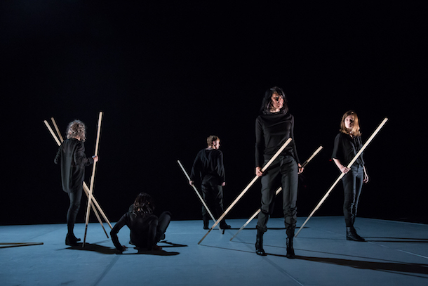 Avant qu'une telle fermeture se produise malencontreusement au final, par le maniement précautionneux d'un meccano de bâtons, une somptueuse et interminable litanie de lentes traversées diagonales dans l'immensité du plateau, trajectoires, suggestion, les uns derrière les autres, suspendus, comme en attente mais dans leur emploi, de tous les interprètes, avait adressé un appel bouleversant à toutes les potentialités de l'existence, singulière et, ou, partagée. Ils marchent, chacun isolé dans sa singularité, mais réunis tous dans ce protocole partagé.