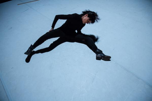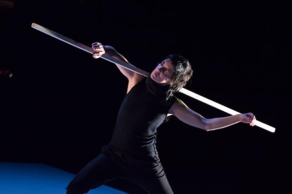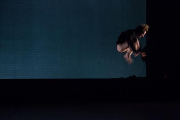 Son clair. Mais source obscure. Un son très clair, cristallin, de métal frappé, rappelant quelque bol tibétain, s'égrène en s'obstinant. La pénombre est si profonde qu'on distingue à peine l'interprète qui produit cette musique minimale. Il serait encore plus incertain de reconnaître sur quel objet, quel instrument exact, on est en train d'agir. Pendant ce temps, une silhouette de danseuse est campée sur des jambes effilées en branches de compas. Lesquelles semblent s'animer seules (par glissements, fermeture et ouverture alternées de leur angle, croisements), comme indépendamment d'une volonté de la personne dont elles ne sont pourtant que deux membres. Soit une personne transportée par son corps, plutôt qu'elle ne le conduirait, comme nous pensons, tout un chacun, le faire à tout instant.