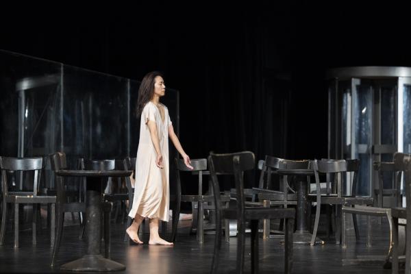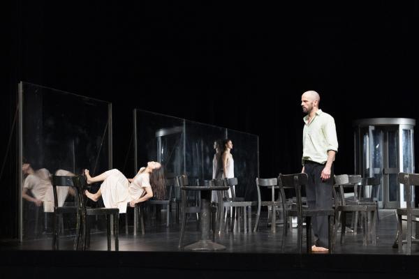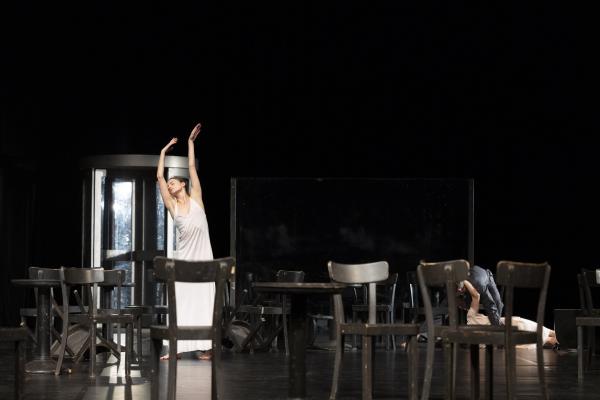 Impossible de dire la même chose des interprètes actuels qui n’ont aucune résistance à surmonter. Ils sont les invités d’un lieu dans lequel ils manquent d’appuis, d’autant plus qu’à La Villette, une paroi en plexiglas tentait maladroitement de délimiter l’espace, à cour comme à jardin. Le café, par son transfert à la Grande Halle, s’était-il soudainement agrandi au-delà de sa concession ? On y cherchait en vain toute trace des fantômes qui l’animaient…