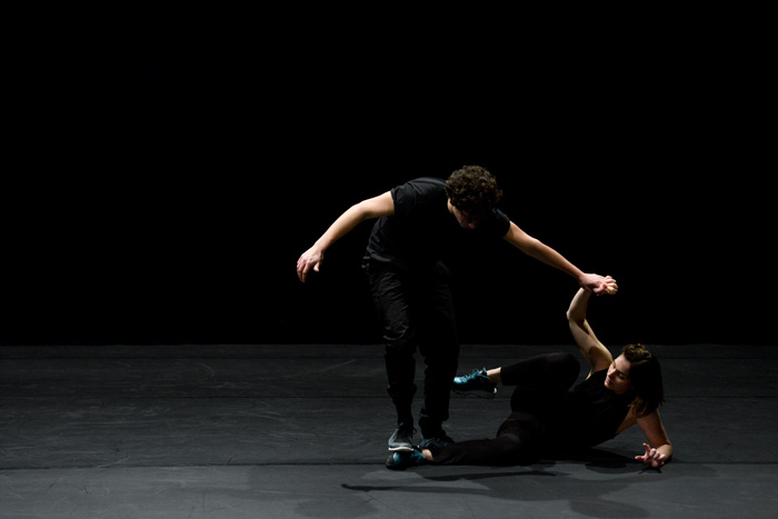 Aucune création de Concordan(s)e ne peut éluder ces questions de fond, chorégraphes et écrivains ayant travaillé dans la séparation des disciplines depuis que l’homme a inventé l’imprimerie. Maud Le Pladec travaille justement sur cette dualité, quand elle confronte, dans Autoportraits, deux silhouettes qui « se cherchent, se battent, se trouvent » dans leurs contrastes, qui « dansent, piétinent, tombent et se relèvent ». Car de ces deux personnages, l’un est «empoté, malhabile, décalé, l’autre rigoureux, adroit, tendant vers une plus grande maîtrise des choses. » Mais qui est qui? Le Pladec, tout juste nommée directrice du CCN d’Orléans, a conçu et interprète ce duo avec Pierre Ducrozet, romancier et enseignant à l’école d’arts visuels bruxelloise La Cambre.