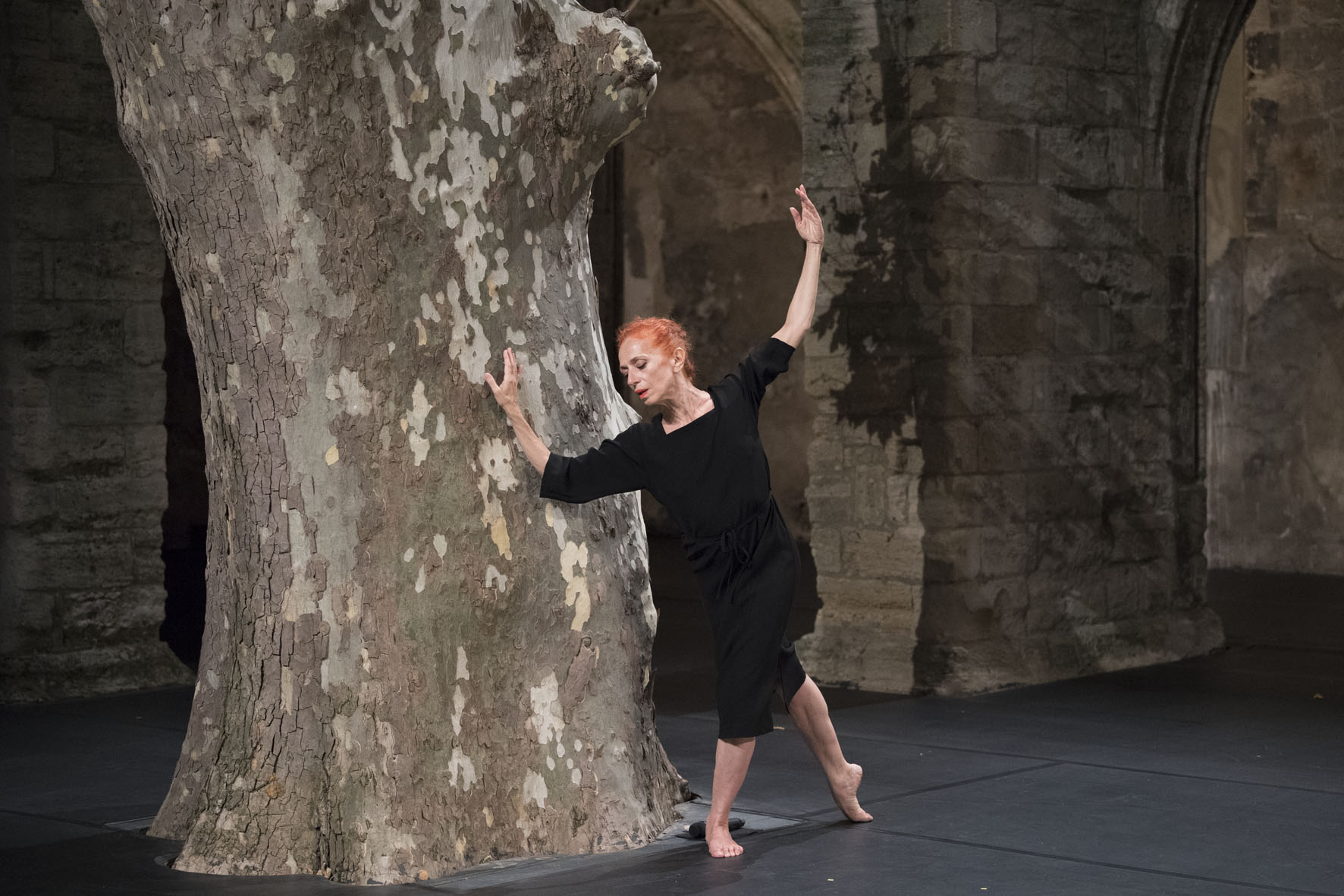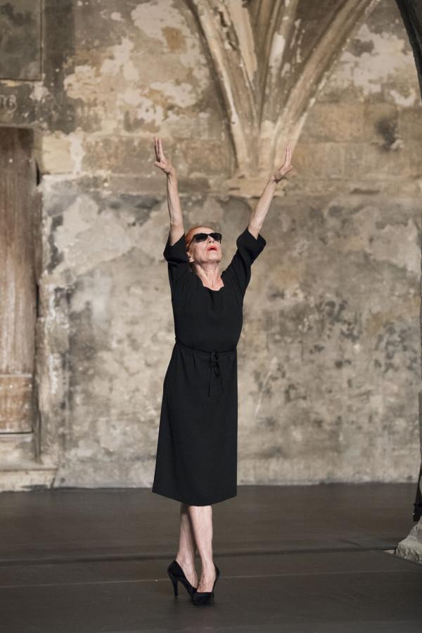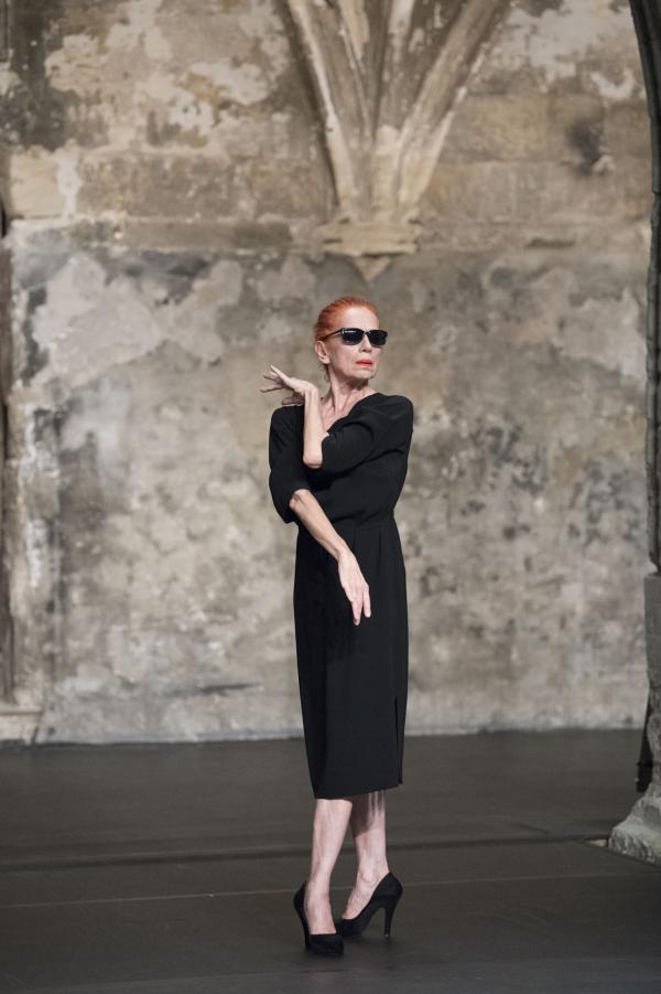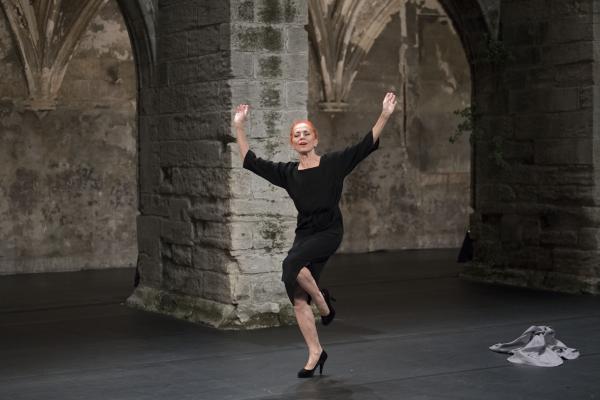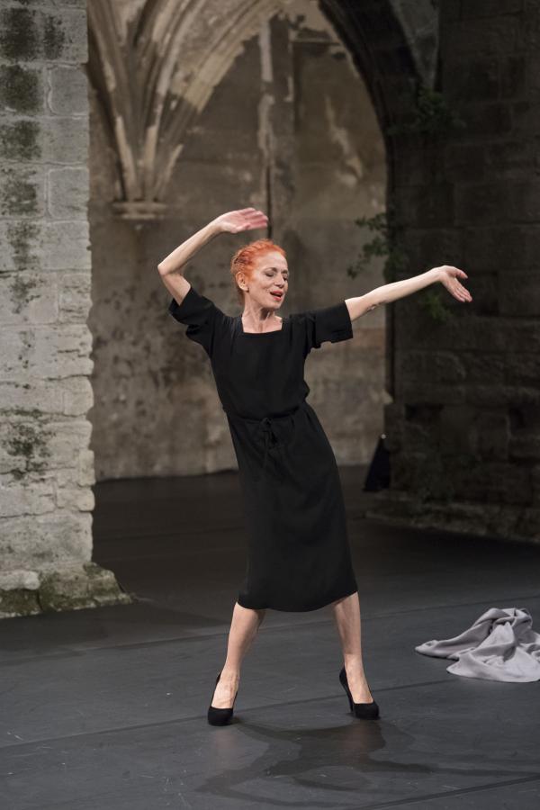 Sans pitié. Quand très tôt dans la pièce, la musique attaque fort sur Carmina Burana, ronflante à souhait, quand s'y dresse la légendaire danseuse Ornella Ballestra, hissée sur des talons aiguilles tutoyant le demi-pointe, chevelure rousse, rouge à lèvres carmin, il faut choisir. L'image peut méduser, frôler l'excès, inspirer la dérision. Sinon, c'est qu'on veut y croire, comme à un trait de folie géniale, exaltation dans la croyance en les puissances de métamorphose, de transusbsantation, que soulève l'art scénique.