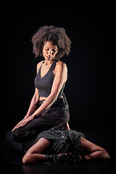 Les corps frappent le sol, s’étreignent, s’effondrent, se redressent. Elles se cambrent et s’affaissent, se redressent. Elles incarnent un état de tension, une mémoire du corps, une forme d’apnée qui rend palpable l’oppression vécue. Chaque mouvement est porteur d’une histoire : celle de la fuite, de l’humiliation, mais aussi de la solidarité. Des instants de danse orientale surgissent, esquissés, à peine perceptibles, comme pour rappeler une identité que l’oppression a tenté d’effacer. Ce n’est pas du théâtre dansé, c’est une danse-théâtre de l’oppression, qui tient du témoignage rituel autant que du manifeste poétique. En direct, le duo Abed Kobeissy (bouzouk) et Lynn Adib (voix) tisse la colonne vertébrale du spectacle. La chanteuse syrienne chante les absentes — les mortes, les disparues, celles oubliées sous les bombes ou dans les appartements désertés. Le son devient murmure, grondement, lamentation — un contrepoint aux corps fragiles sur scène.