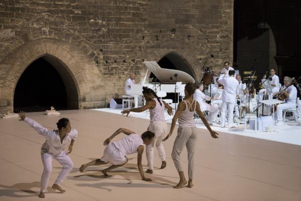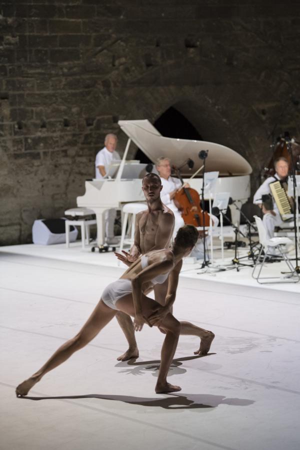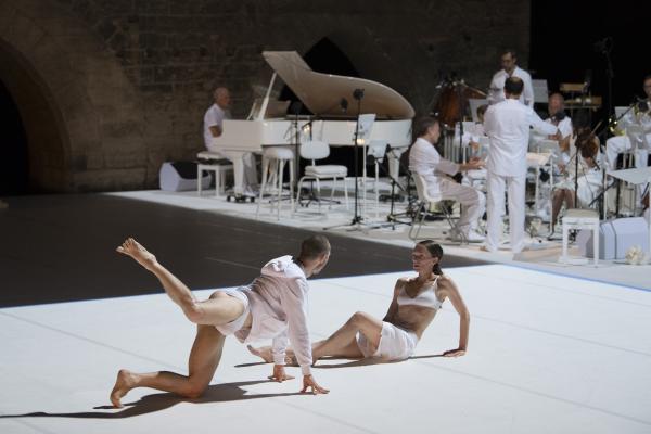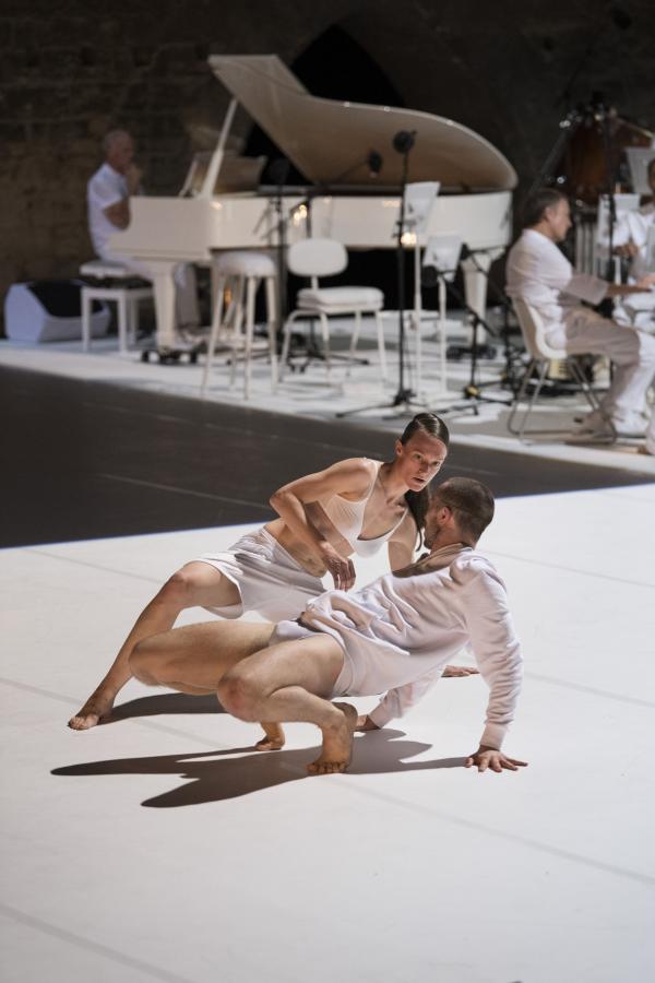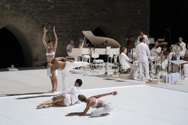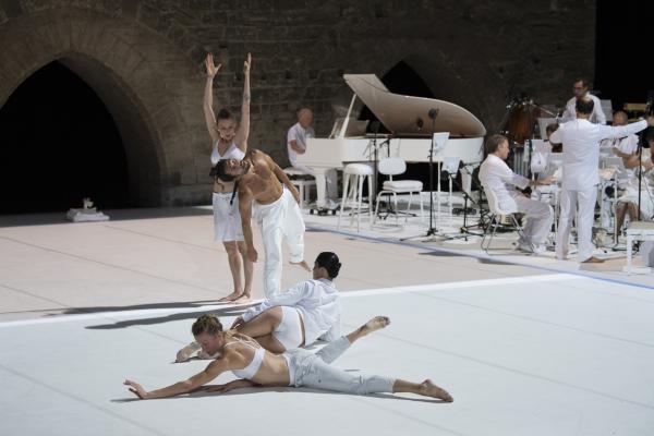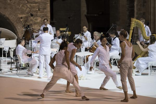 Sur une crête entre musique et danse, une composition à la taille de la Cour d'honneur, portée au comble de la maîtrise. Egalement une interpellation politique, aussi cinglante qu'elle laisse perplexe.