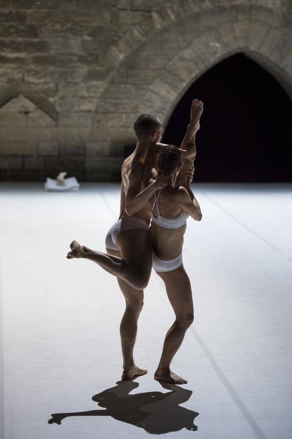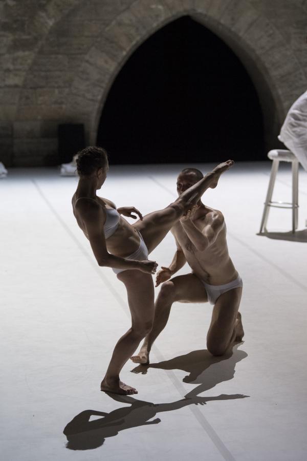 Successivement empruntée à Pierre Boulez (sa pièce Dérive 2) et, dans une veine proche, Rebecca Saunders (Fury II), la composition musicale s'entend vaste et abrasive, tout en exigente acuité. De grandes lignes de tension, un souffle aride et puissant, emportent cette longue pièce, toute à la hauteur du site d'exception pour lequel elle a été créée. La composition chorégraphique a ces mêmes qualités, de structure rigoureuse portée sur la crête du qui-vive. Tout y semble absolument maîtrisé, et pourtant jamais rien ne s'y complait dans un leurre de stabilité. Une page s'achève, qu'il faut dèjà tourner la suivante, et les principes s'affirment, les logiques s'approfondissent, en même temps que tout se renouvelle.